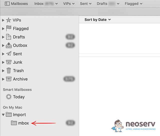 5. Apple Mail bo začel z uvozom e-pošte. Po končanem postopku boste uvožena sporočila našli v mapi Import -> mbox v stranskem stolpcu (sekcija On My Mac). Iz omenjene mape lahko mape in sporočila premaknete v nove ali obstoječe e-poštne predale, nato pa mapo Import izbrišete.
