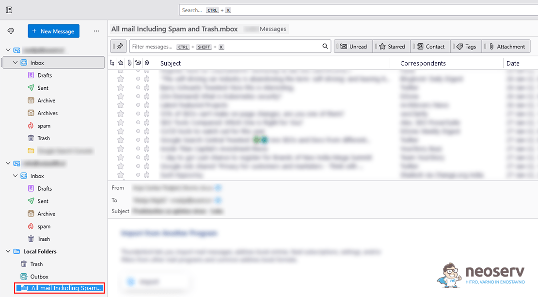 Ko imate vse našteto pripravljeno, lahko datoteko .mbox uvozite v e-poštni odjemalec Thunderbird.