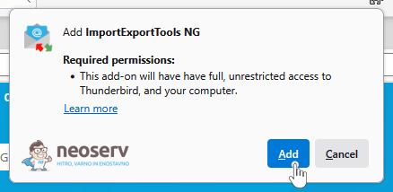 4. Potrdite namestitev razširitve s klikom na gumb Add.