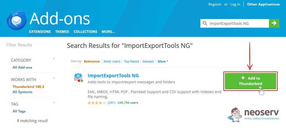 3. V iskalno polje vpišite ImportExportTools NG in namestite omenjeno razširitev.